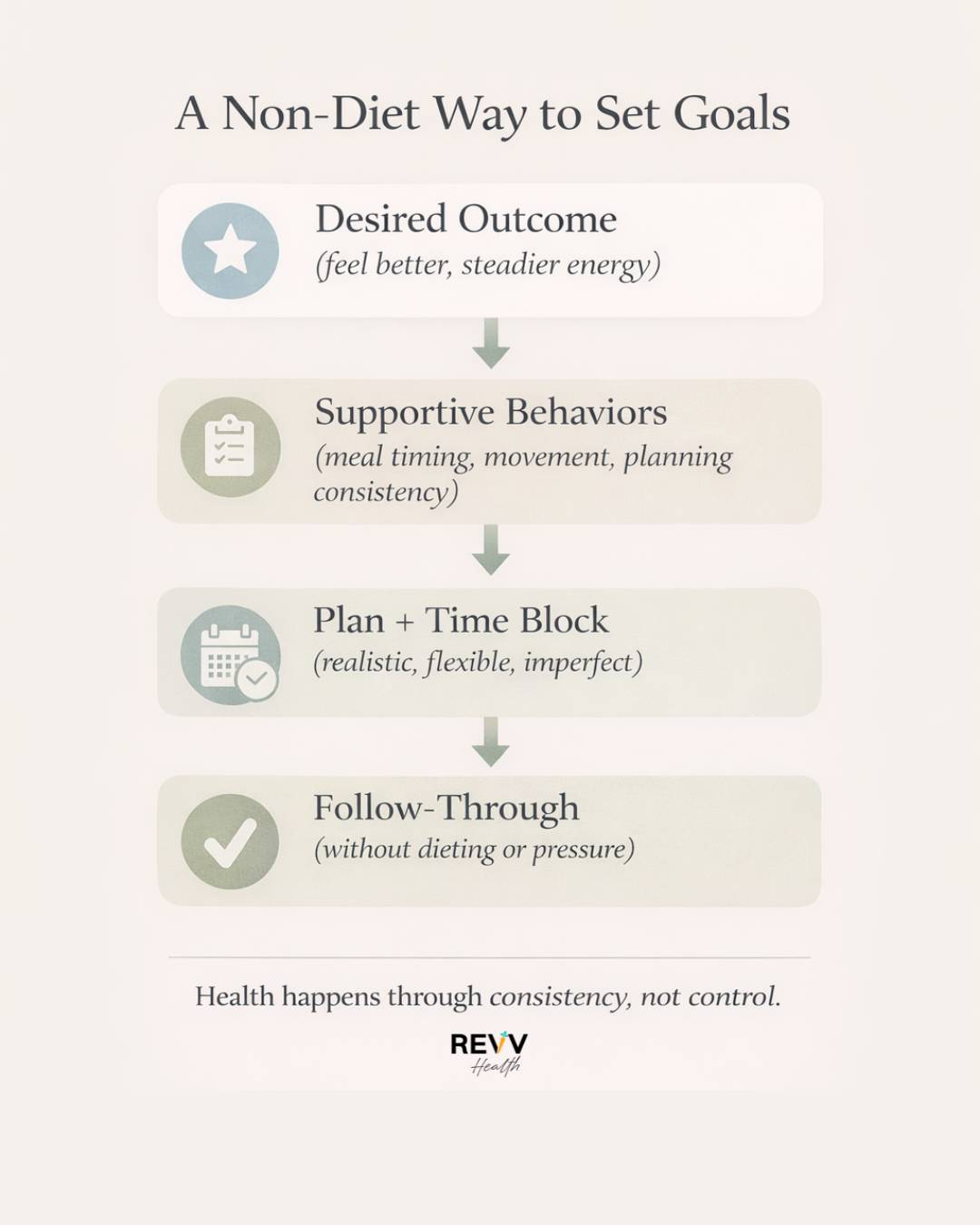 We are on the final leg of non-diet goal-setting: the follow-through.